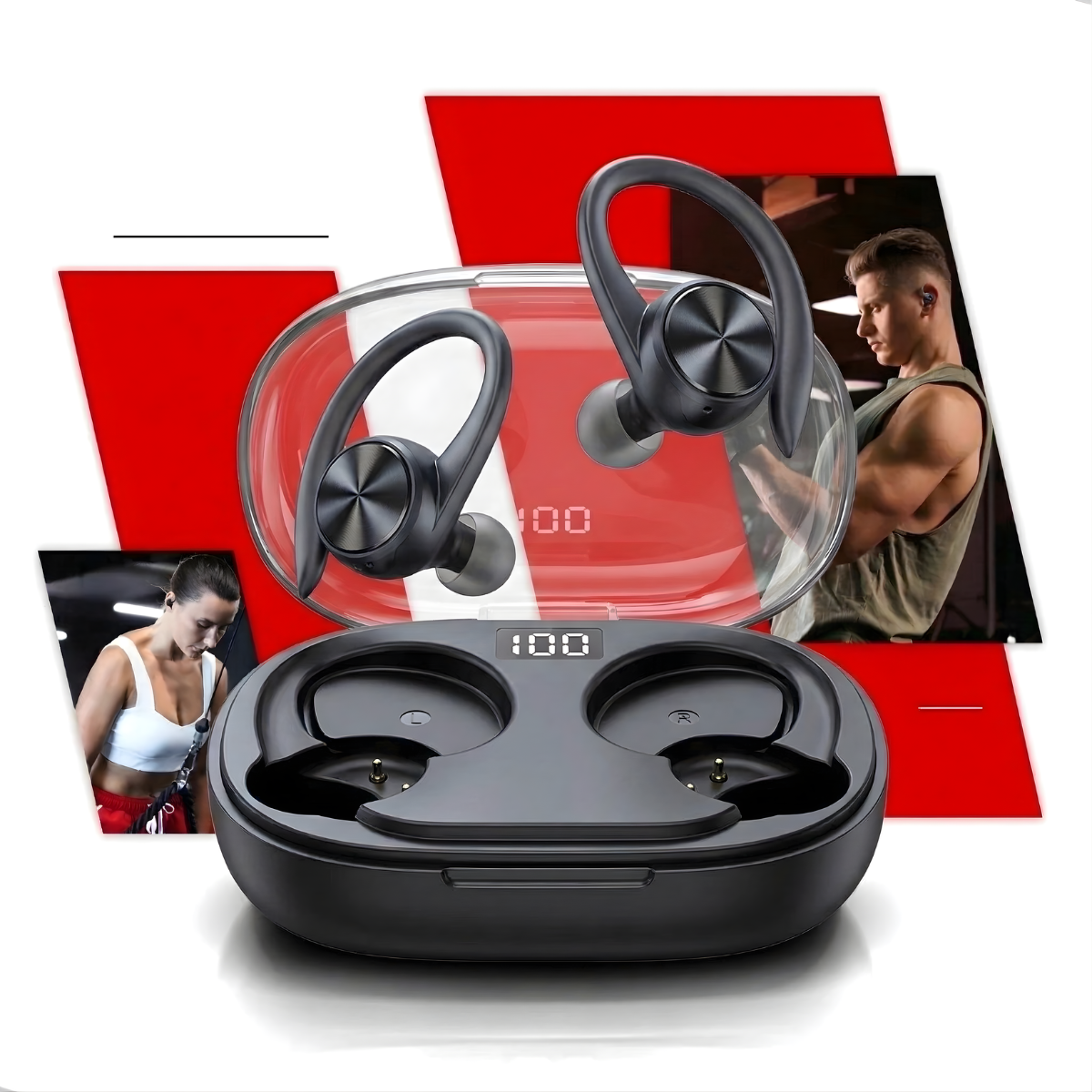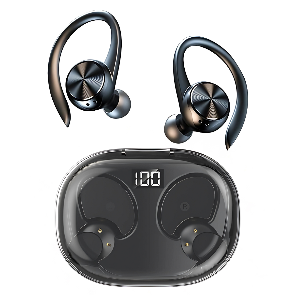 - Case de carregamento com display LED para status da bateria.
